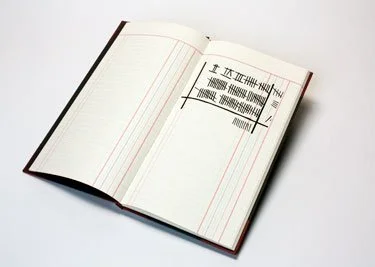 Pen ruling was widely used in the 19th and early 20th centuries in the ledger and account book trade; Golden Business Forms was one of the last purveyors of this technology. Bound in Japanese buckram with foil stamped title, the book was letterpress printed by the artists at SFCB.